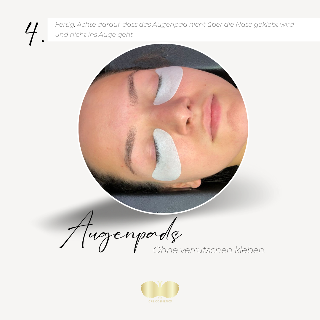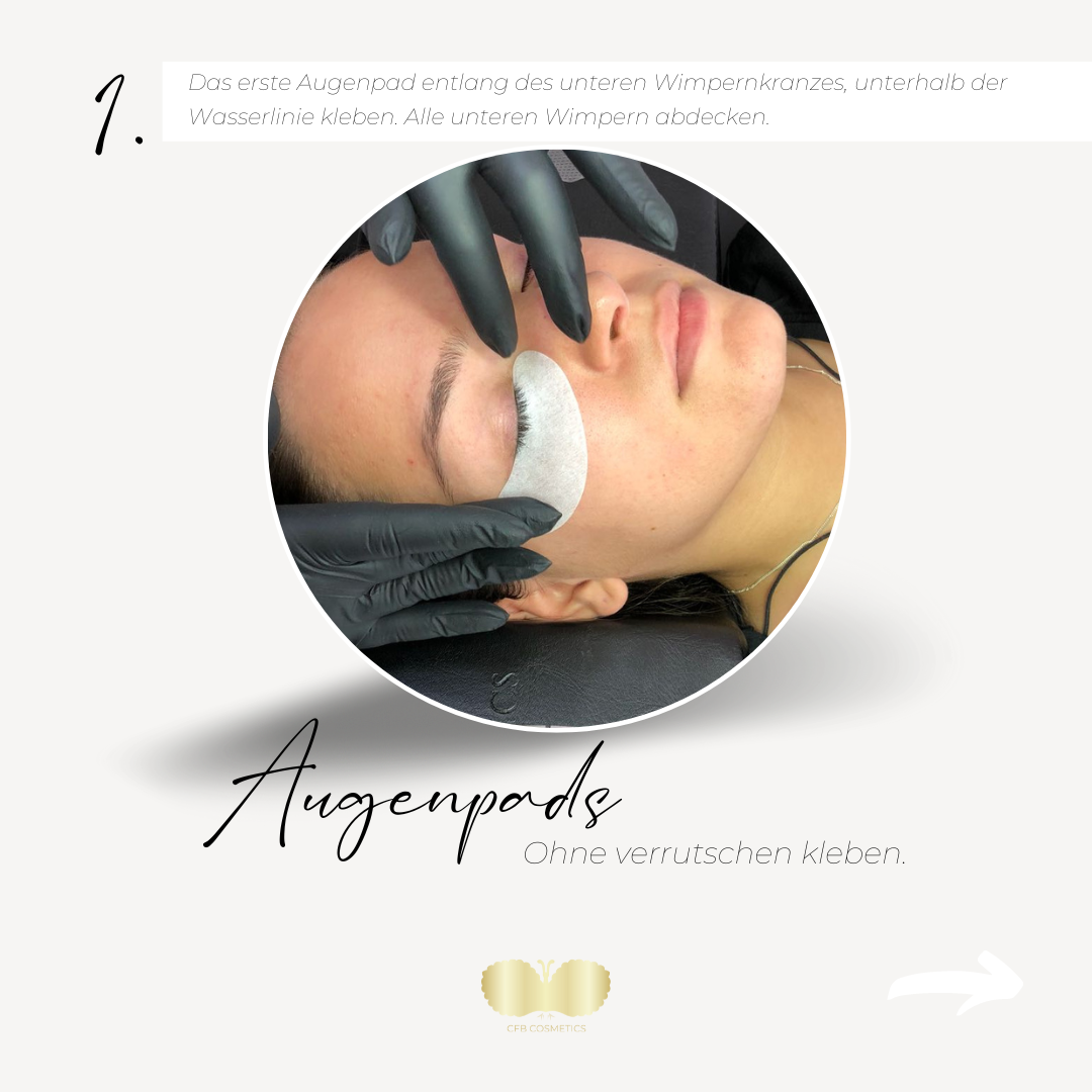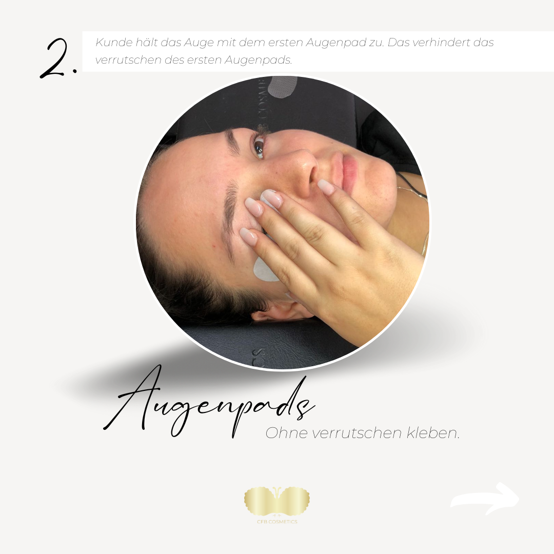 Die Wahl der richtigen Positionierung der Augenpads ist daher von entscheidender Bedeutung, um den Kundenkomfort zu gewährleisten und mögliche Reizungen oder Unannehmlichkeiten zu vermeiden. Als erfahrene Wimpernstylisten ist es unsere Priorität, Ihre Augenpartie sorgfältig zu schützen und gleichzeitig ein angenehmes und sicheres Erlebnis zu bieten.